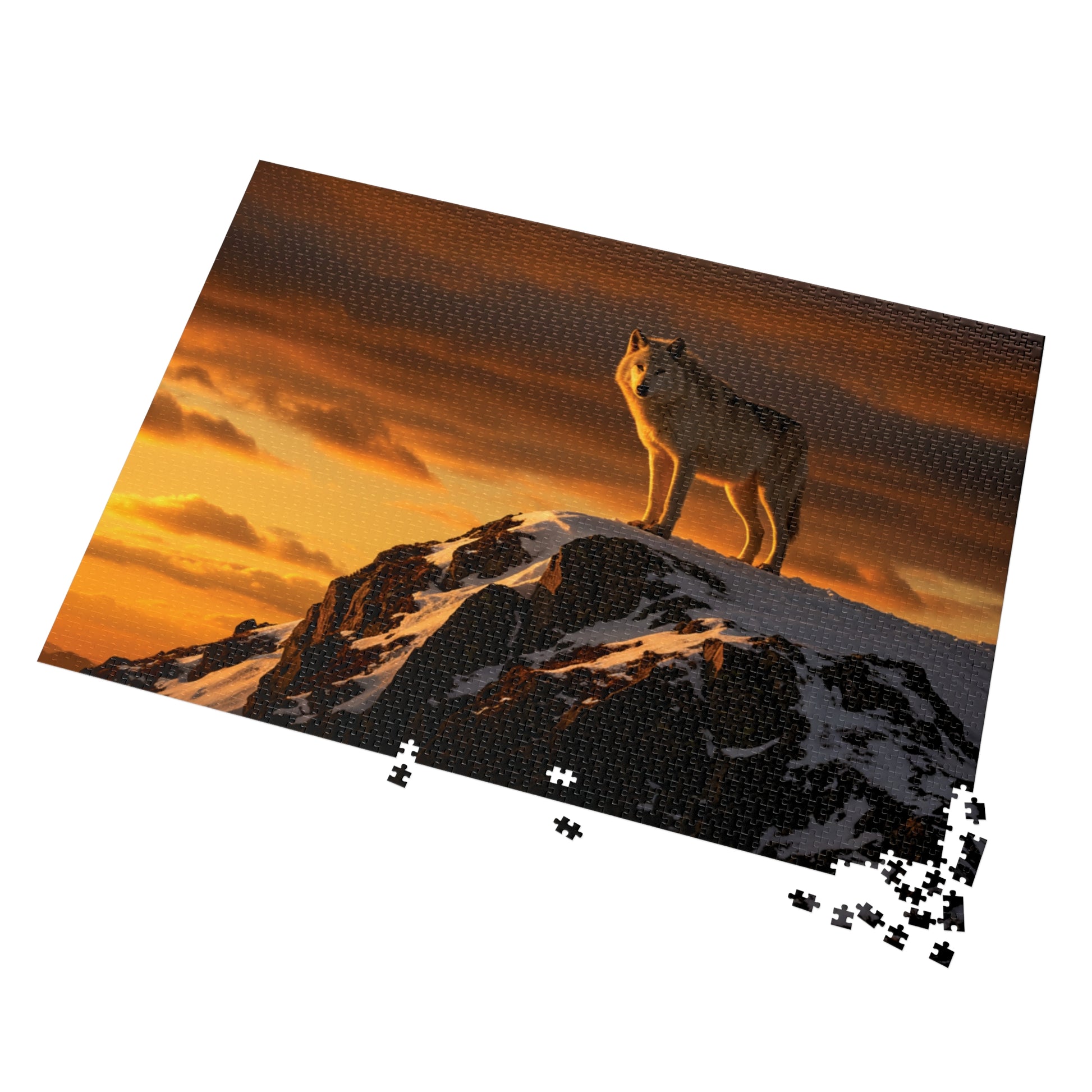 Step into the wild serenity of nature with this breathtaking puzzle featuring a majestic wolf gazing over a snowy mountain range at sunset. The warm golden hues of dusk contrast beautifully with the crisp whites and deep shadows of the snow-covered landscape, evoking both strength and solitude. Perfect for wildlife lovers, adventurers, and puzzle enthusiasts alike.