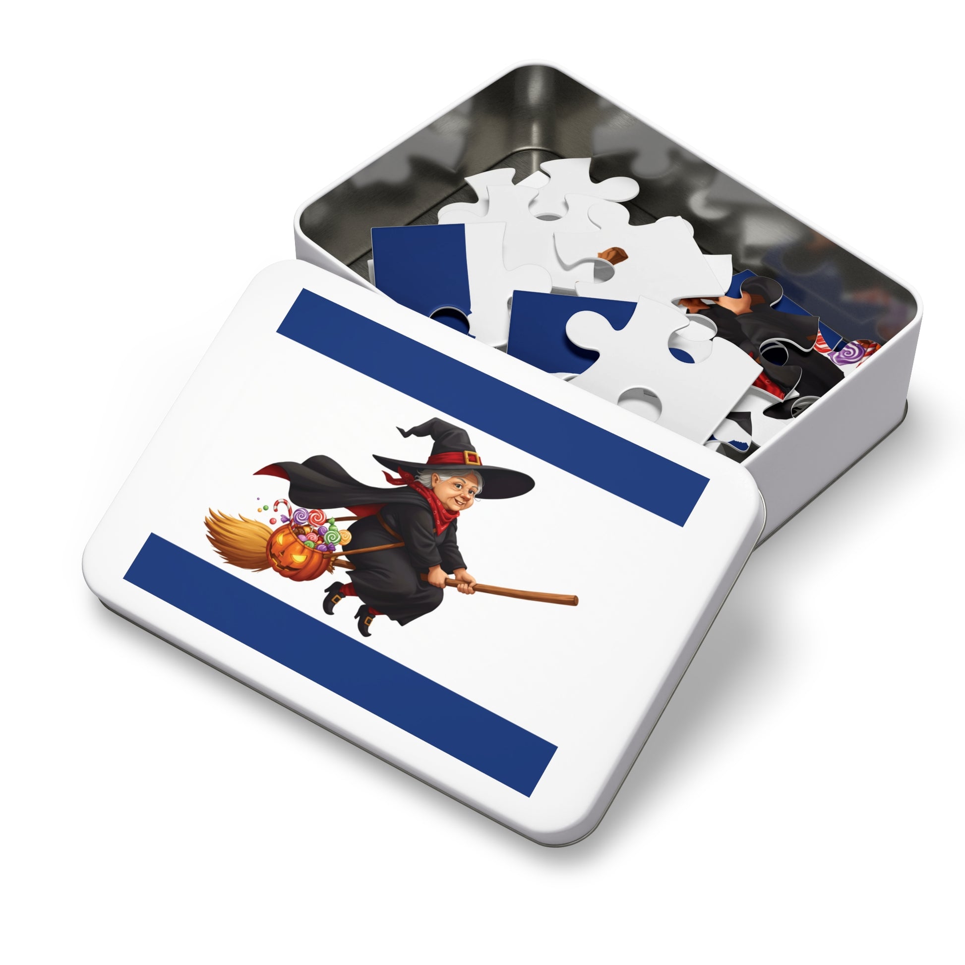 Celebrate the spooky season with this delightful Halloween jigsaw puzzle, featuring a cheerful cartoon witch flying on her broomstick, pumpkin candy basket in tow! With vibrant colors and whimsical details, this puzzle is perfect for family fun, seasonal décor, or a thoughtful gift.