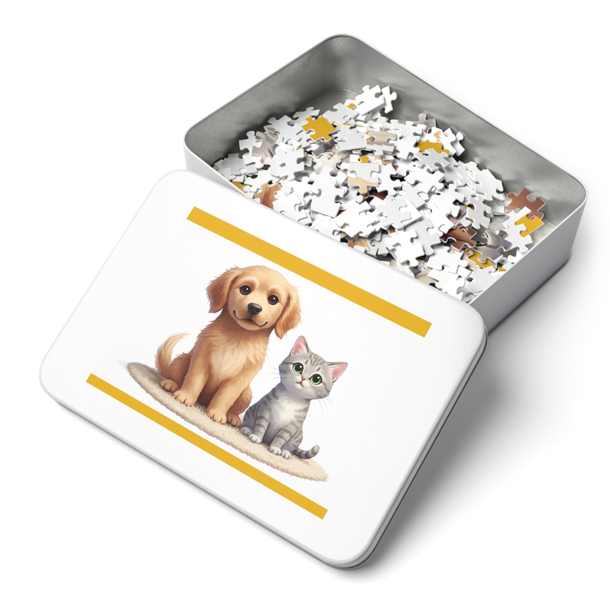 30, 110, 252 Jigsaw Puzzle| Adorable Puppy and Kitten Puzzle | Cute Pet Duo Jigsaw | Whimsical Animal Illustration for Kids & Pet Lovers | Multiple Sizes Available