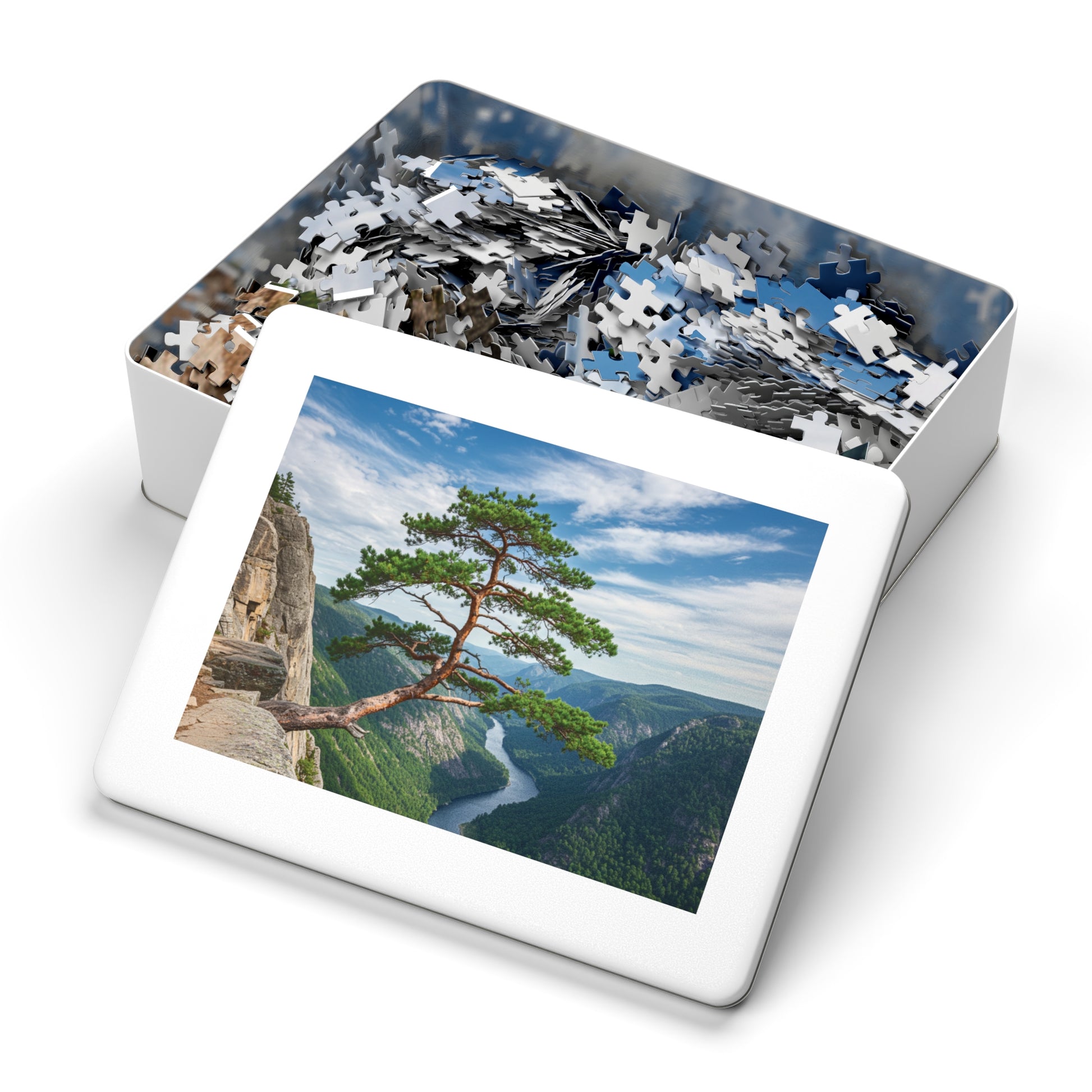 Cliffside Tree Jigsaw Puzzle (110, 252, 500, 1000, 2000 pcs) – Peaceful Nature, Mountain & River Design, Serene Forest Scene
