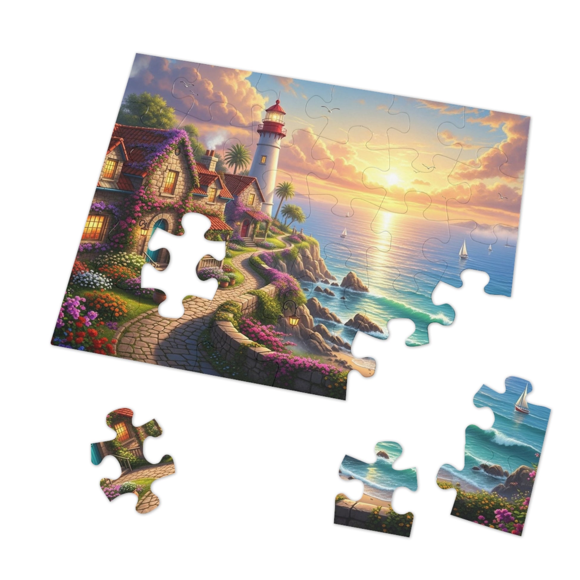 Coastal Lighthouse Sunset Jigsaw Puzzle