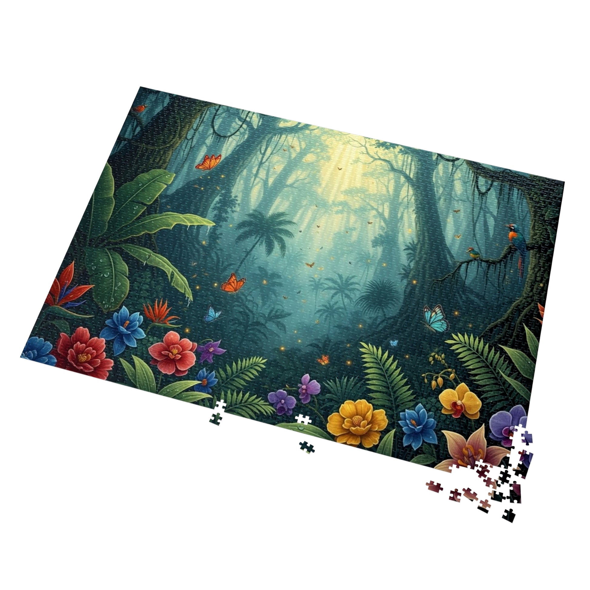 Enchanted Tropical Forest Puzzle with Butterflies, Exotic Flowers and Golden Light