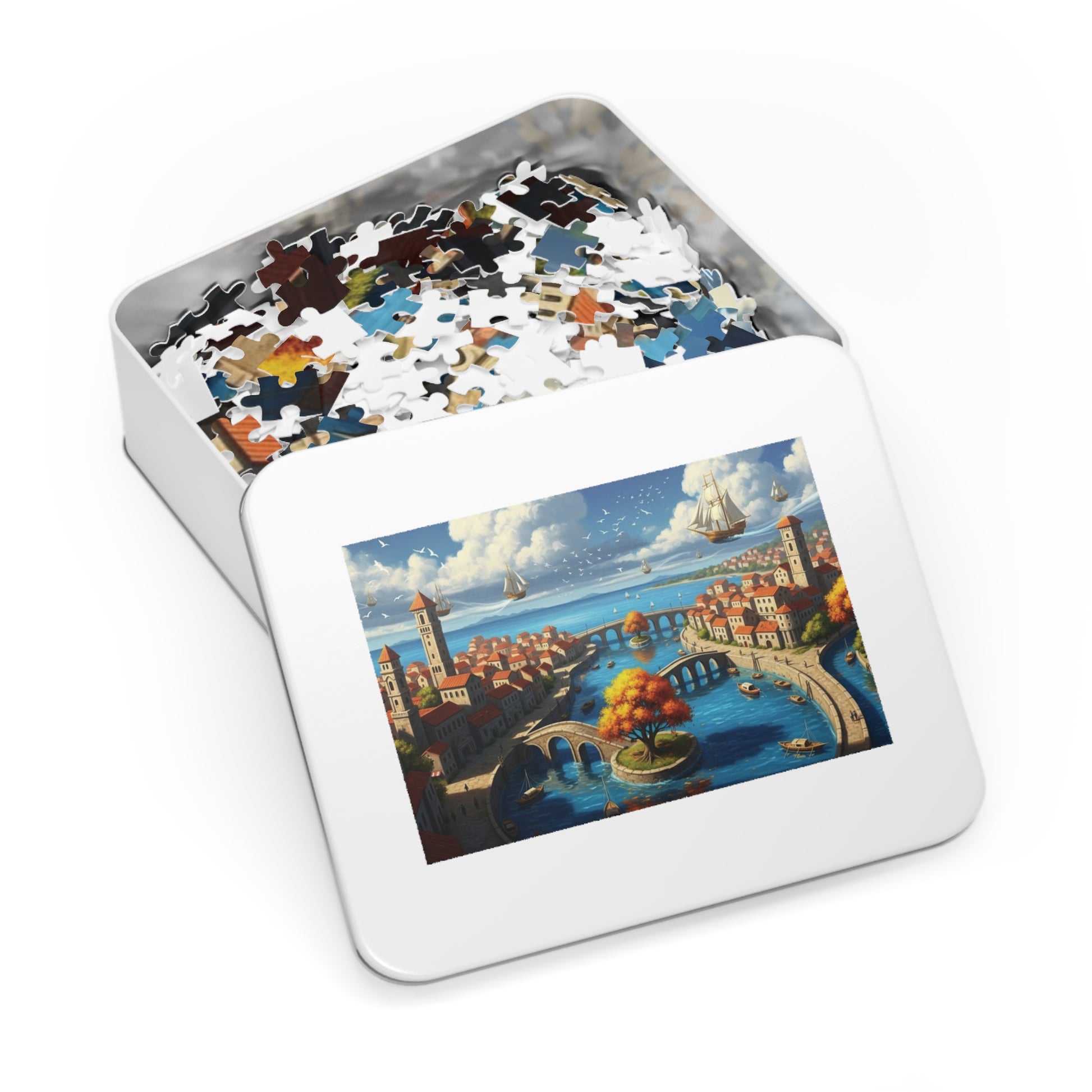 Floating Ships Over the Canal City, Coastal Town, Sailing Ships & Bridge Jigsaw Puzzle ✨