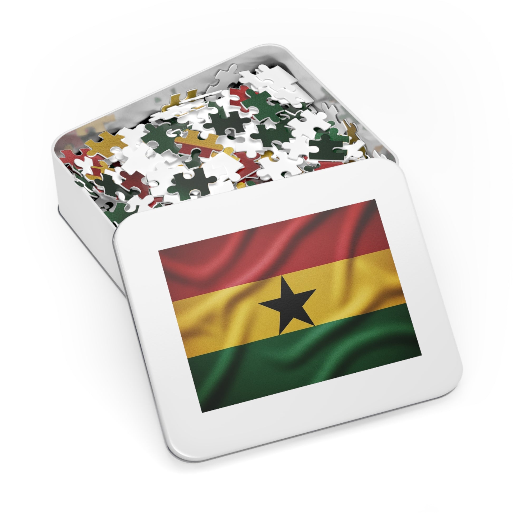Celebrate the spirit of Ghana with this powerful jigsaw puzzle featuring the iconic red, gold, and green national flag crowned with the bold black star at its center. Enhanced with realistic fabric texture and flowing folds, this design brings depth, movement, and strength to a symbol that represents independence, unity, and African pride.