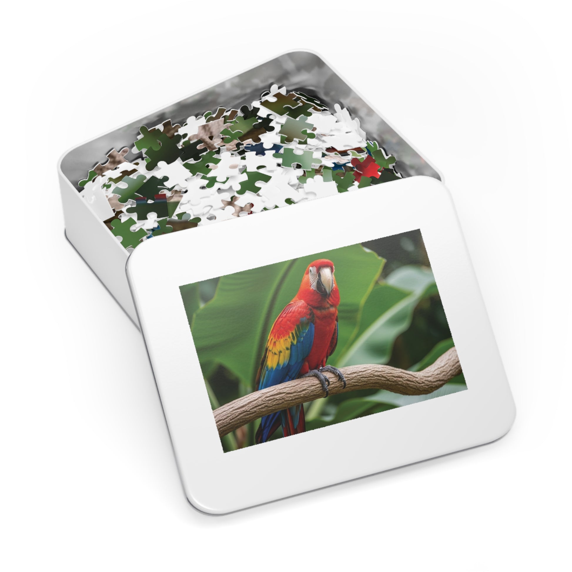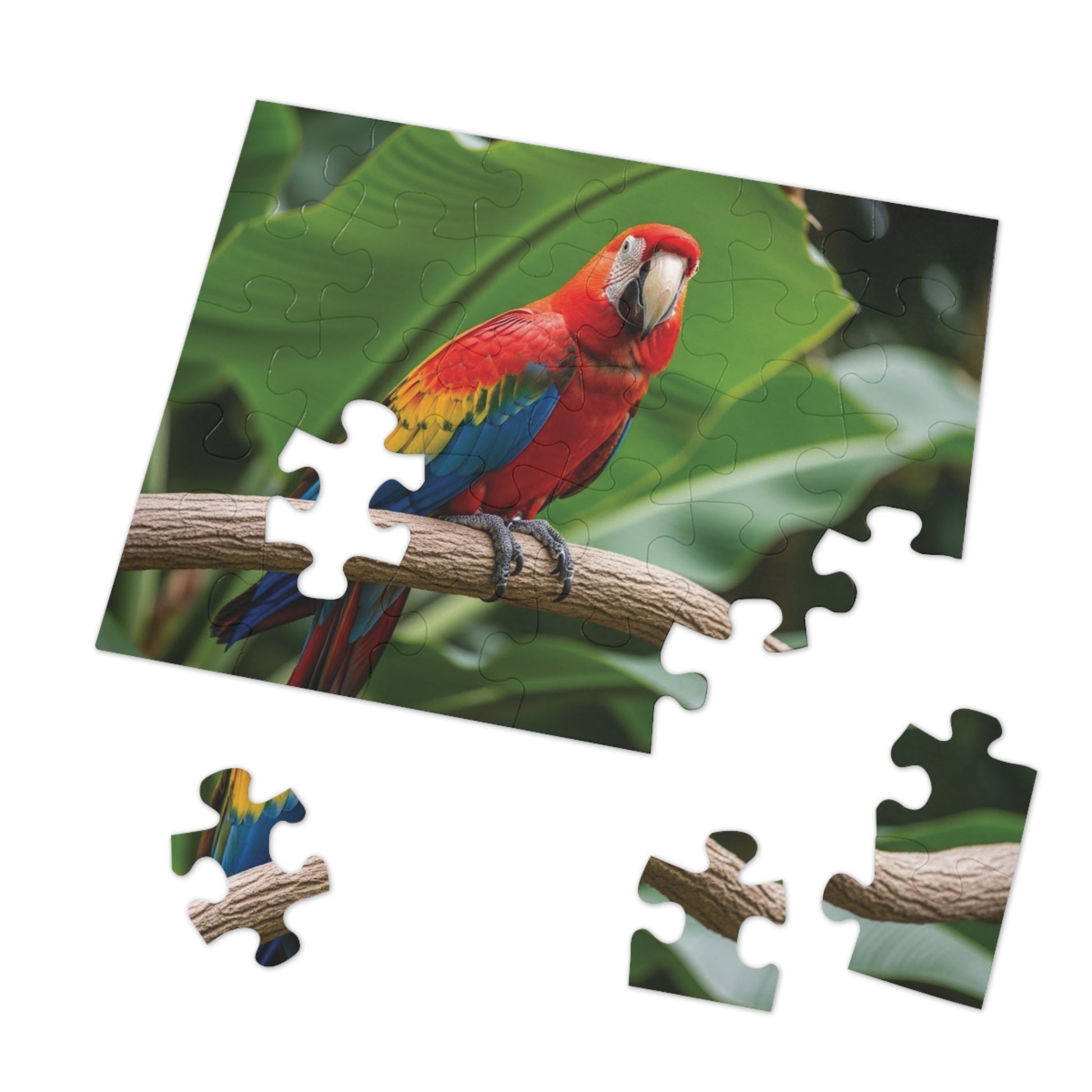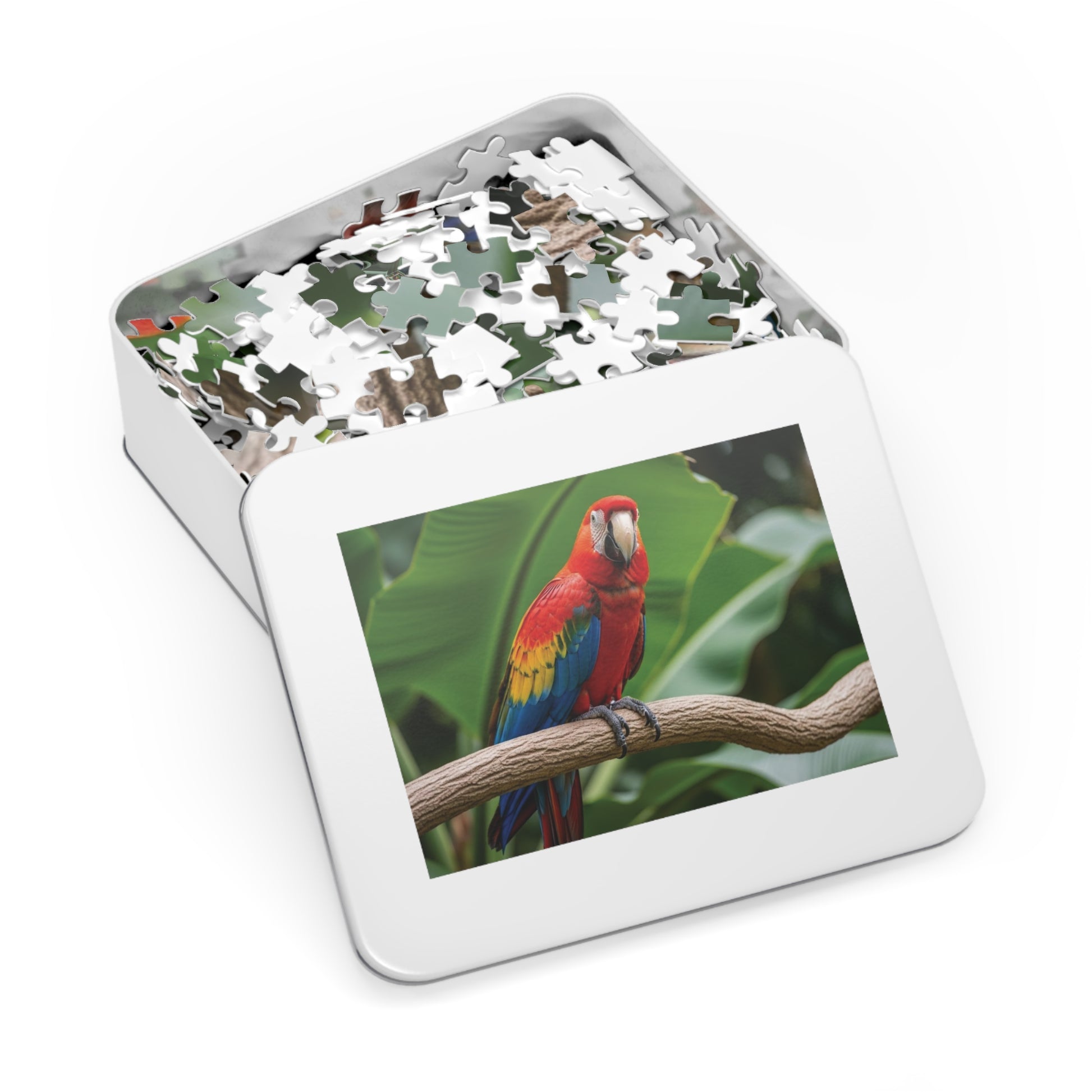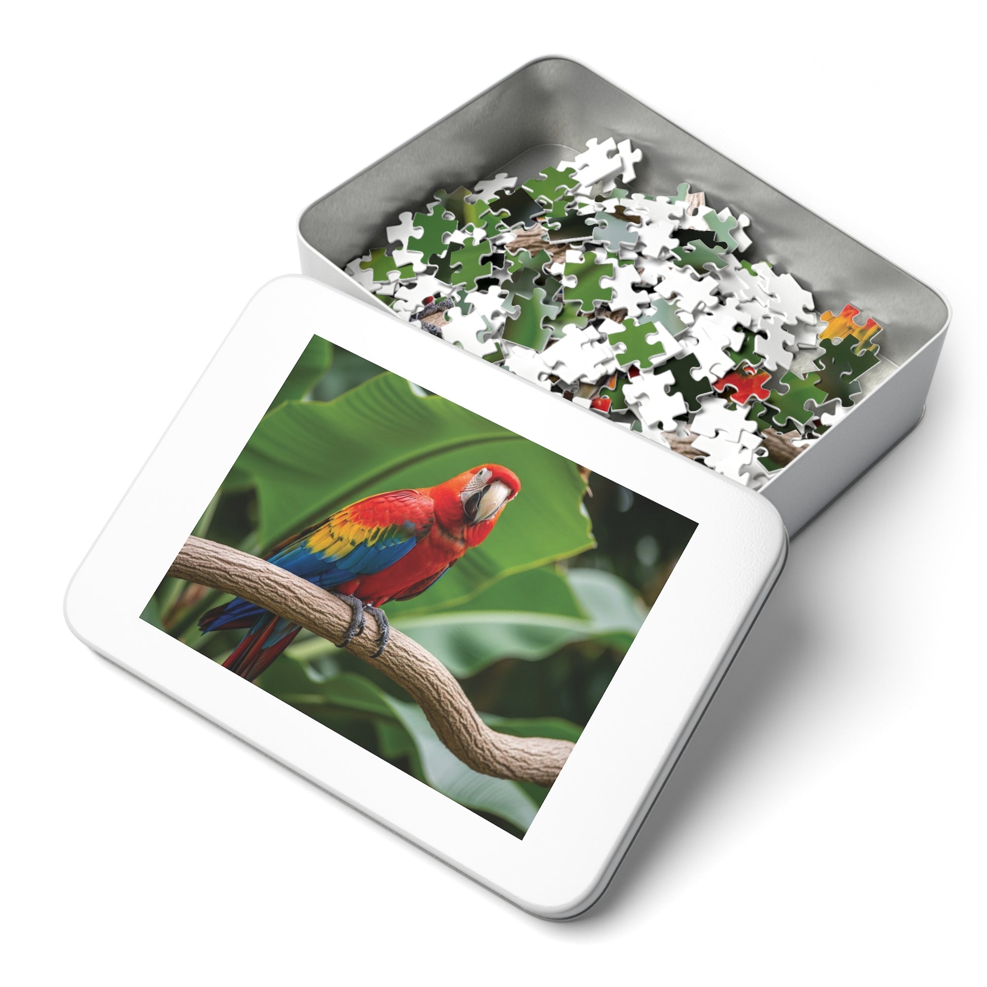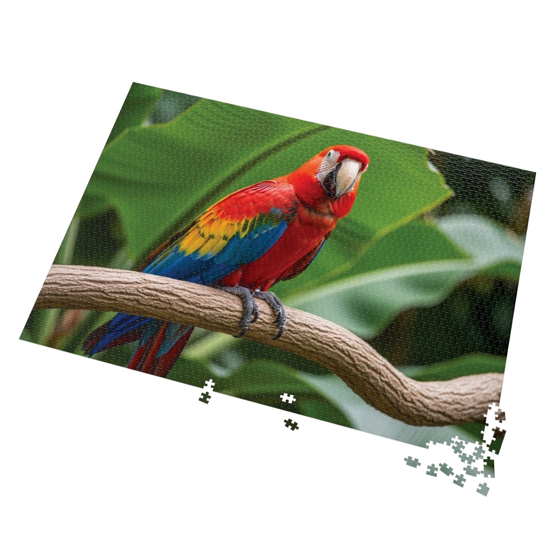 This vibrant jigsaw puzzle features a striking scarlet macaw perched gracefully among lush tropical leaves. With its bold red plumage, golden yellow wings, and deep blue accents, this artwork captures the beauty, calm, and wild elegance of nature. Perfect for relaxation, mindfulness, and creative bonding, this puzzle invites you to slow down and immerse yourself in color, detail, and serenity.