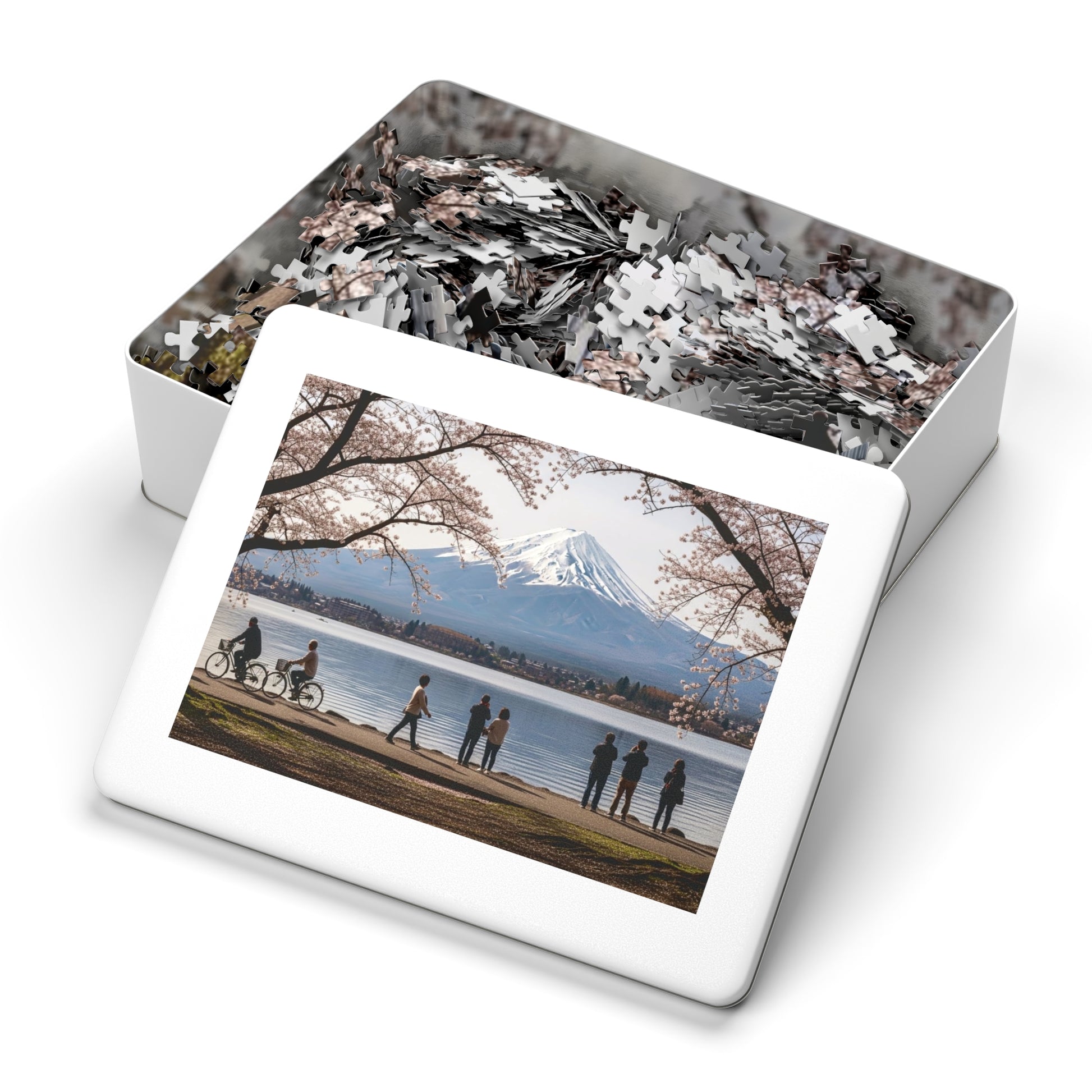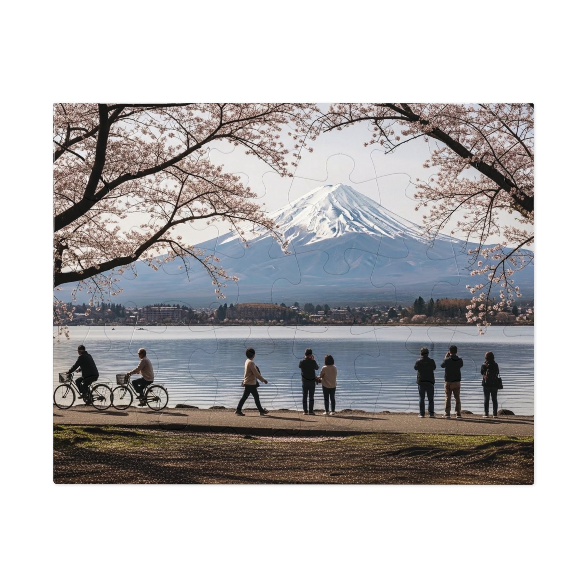 Mount Fuji Cherry Blossom Lake Jigsaw Puzzle 🌸 Snow Capped Peak, Sakura Frames & Serene Japan View