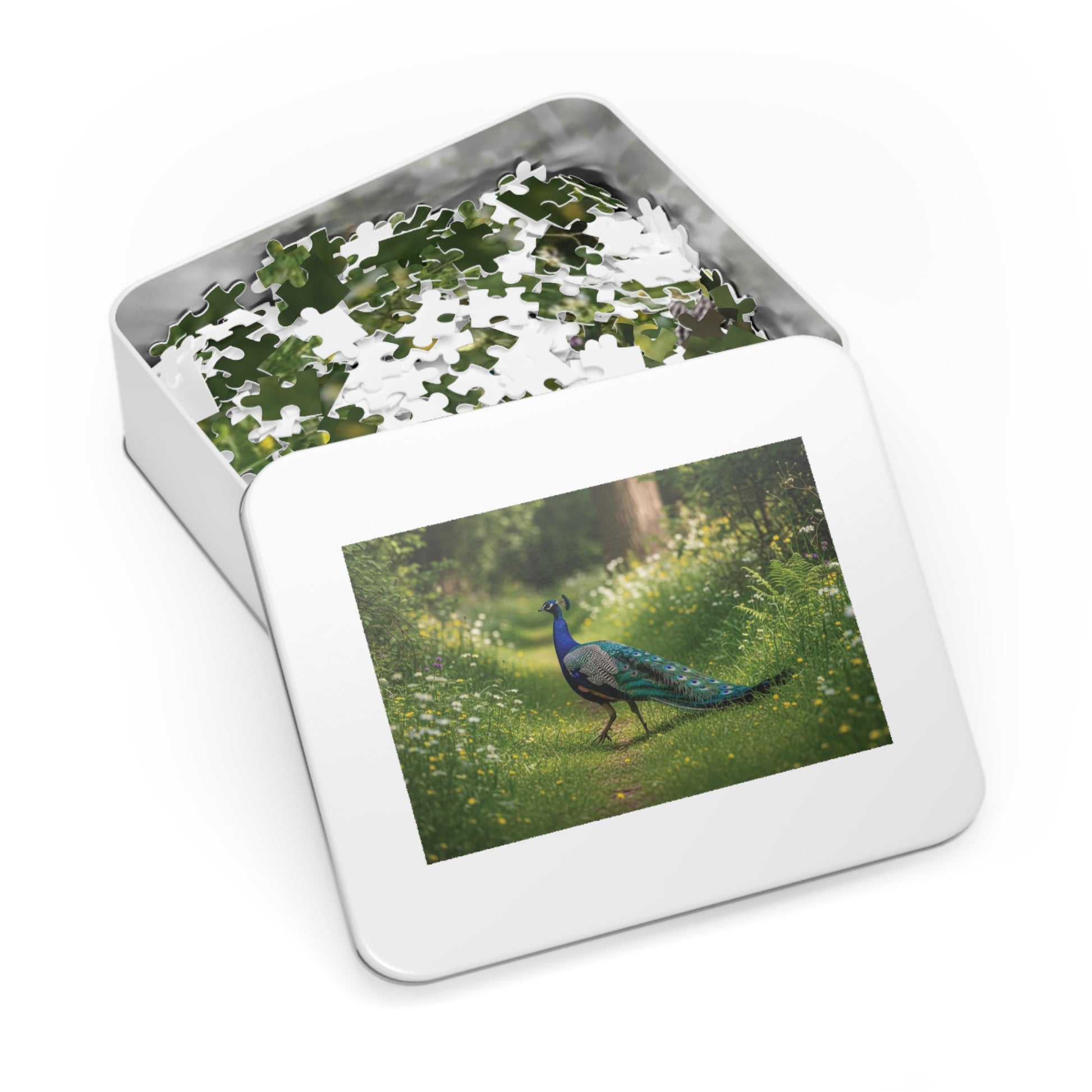 Peacock in Wildflower Garden Jigsaw Puzzle (with Tin) — 500-Piece Nature Puzzle Gift